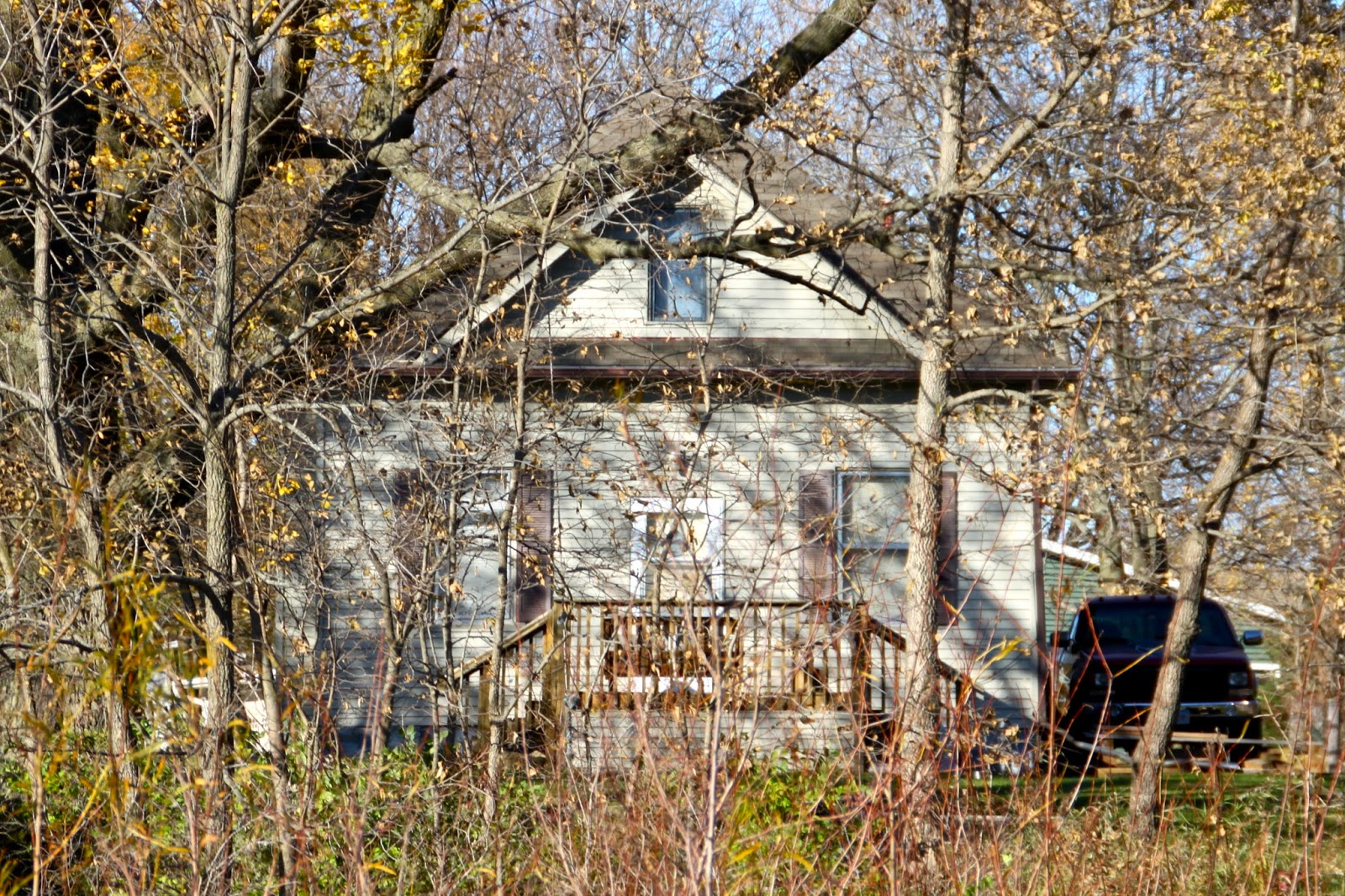 This next photograph was taken on 10/31/14 so as to show the front of the building after most of the leaves have fallen. There is no unobstructed view of the building without going on the property.