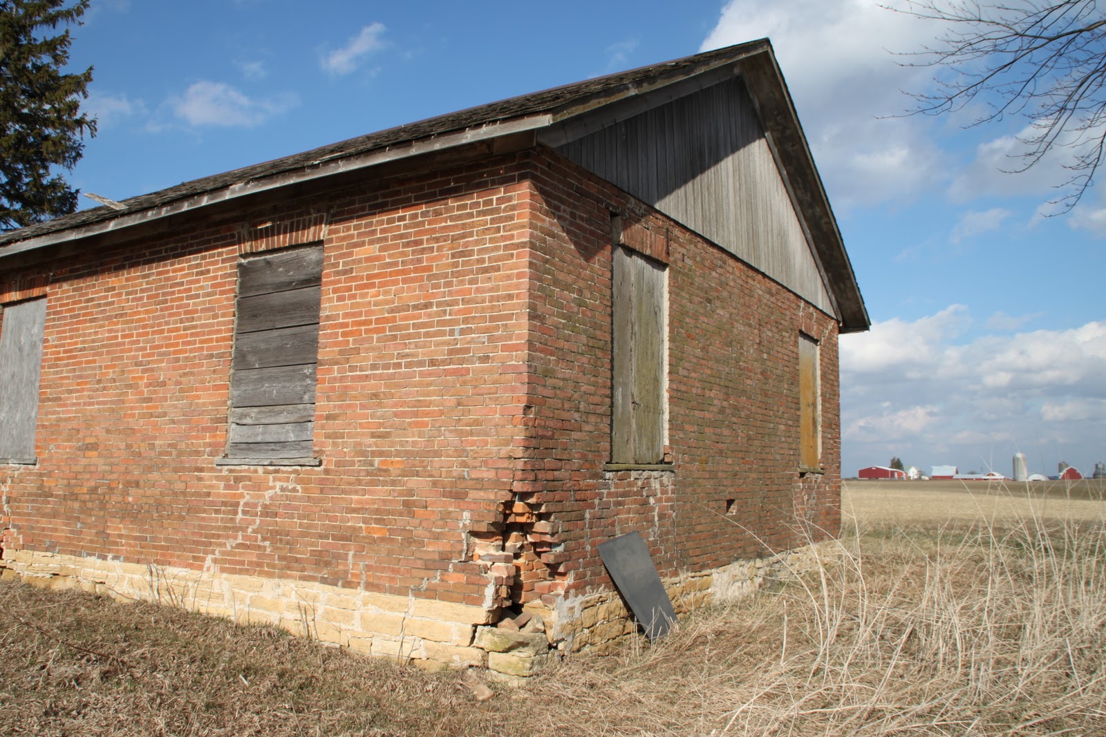 I grew up in a small Ohio town and I rode the school bus from 1st through 12th grades. My bus ride always included a country road on which every school day we saw a one-room brick school house. (SW corner of Stine Rd and Enon-Xenia Pike). As the years went by I watched this wonderful, familiar friend fall apart. After I married the school really began to deteriorate. Every time we visited the area I would want to take a photo of the school but never did. Finally, when we went specifically for the task, the school was gone. It was a huge loss for me and, since that time, whenever we pass a one-room school it is a joy to stop to take a picture or two. Thus, our collection here and the blog with schools in other states. Jill :oD