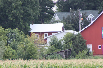 South of West Union. Seen on a farm, set back from the road and restored as living quarters. Located on the west side of SR150, .6 mile south of 210th St. Obscured by trees from the road, and seen only from the south at a distance. Will return to photograph again when the season changes to reduce foliage.