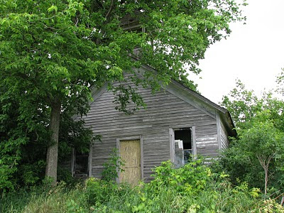 In this school we could see the remnants of the blackboard but could not get in a position to photograph it. This school is 2.8 miles south the Turkey River (at Eldorado) on Iowa SR 150, on the west side of the road. Photographed on 6/29/08.