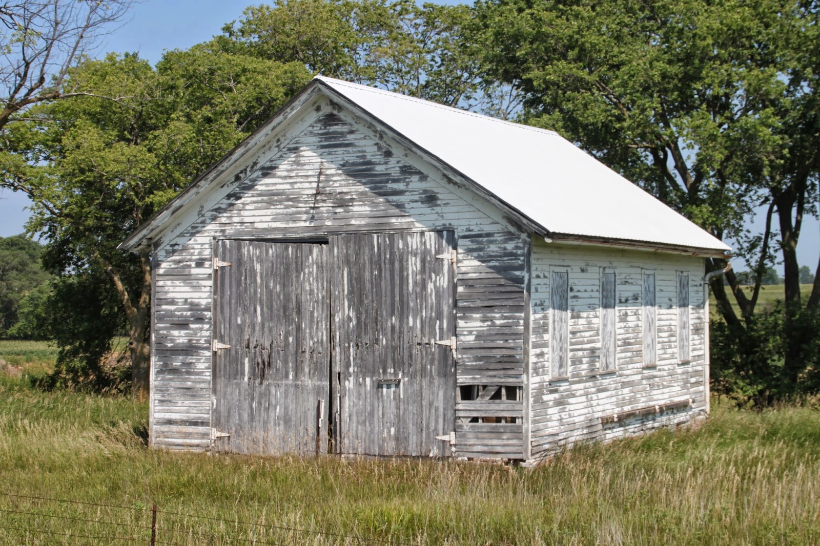 Used 1873 to 1959, now storage or barn. On U.S. 34 just east of CR L63, north side of the road. Notice the entrance to the storm shelter in the last photo.