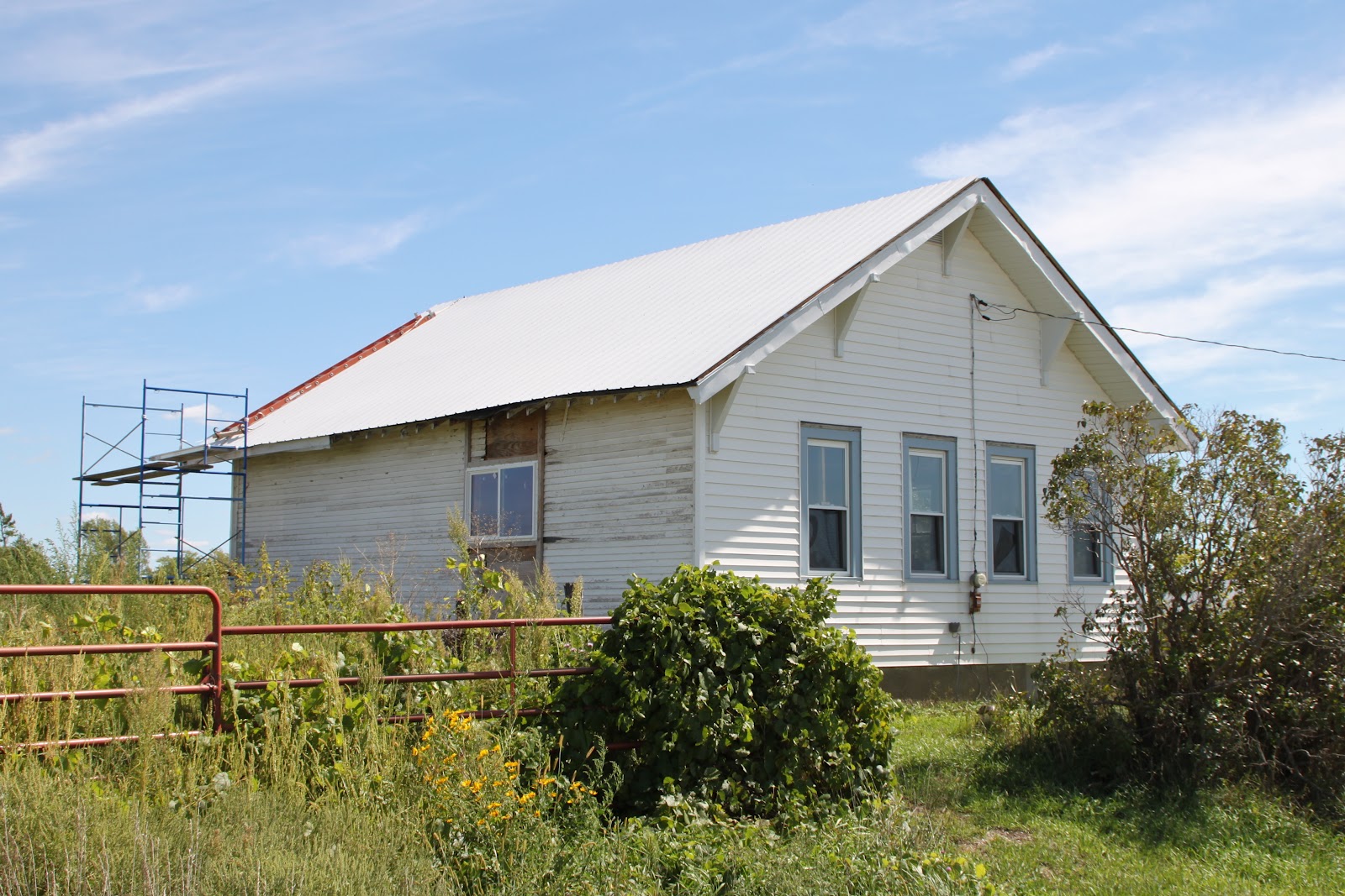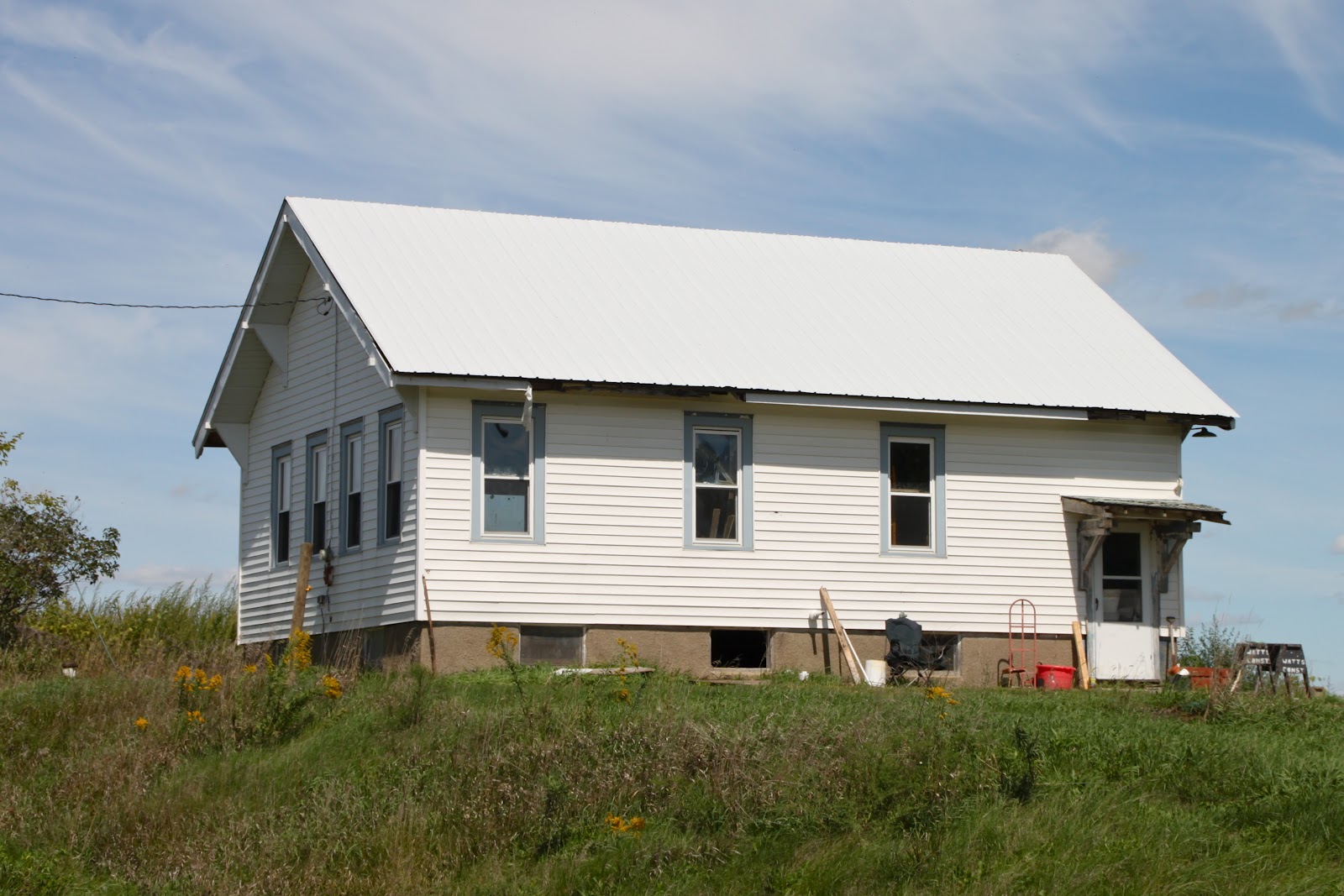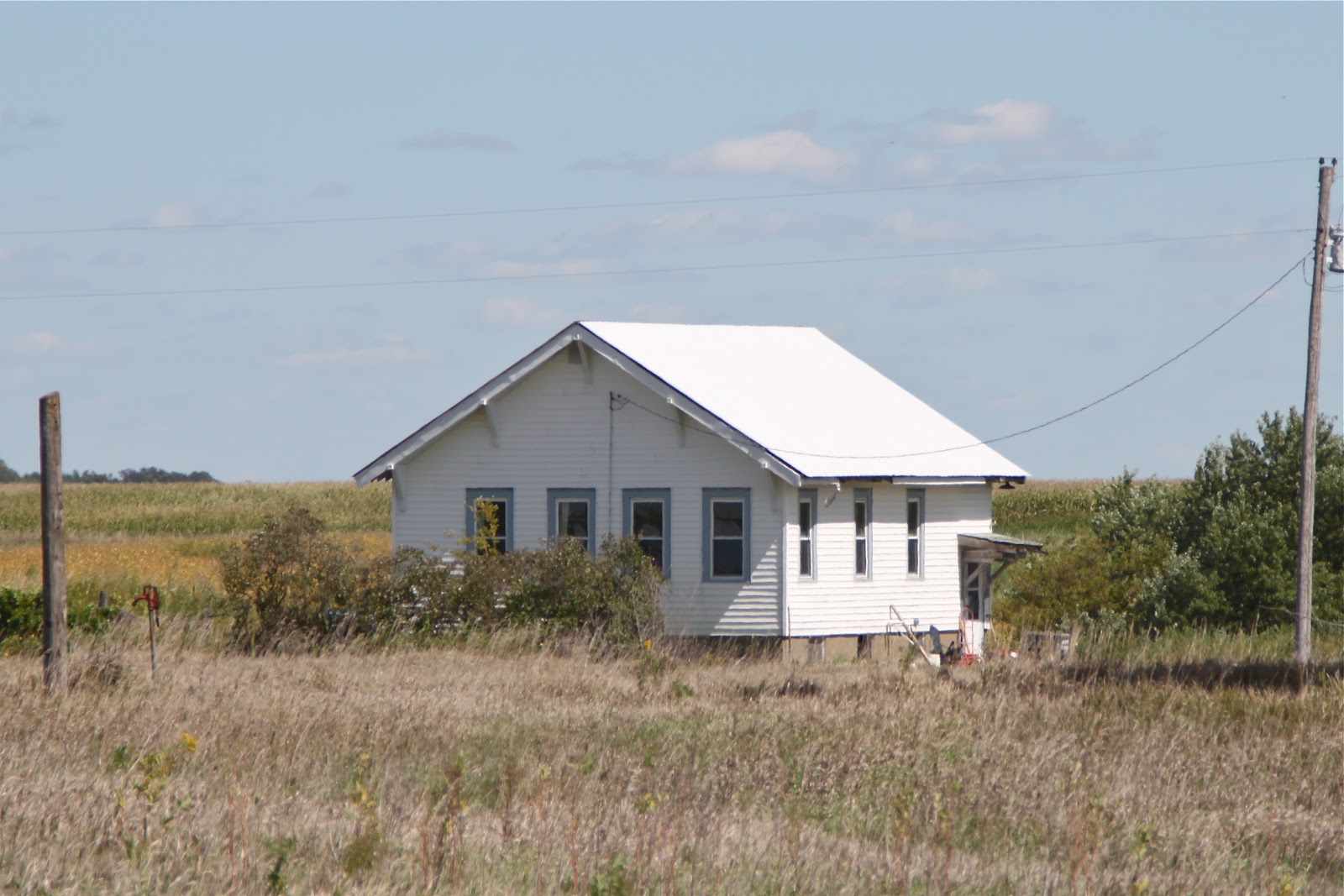 Built ca. 1900, closed ca. 1952. From Marengo, proceed north on County V66 to County F15 and turn east and go approximately 1/2 mile to MM Ave and turn north. Upon reaching 110th Street, turn east to N Ave and the school will be on the NE corner of that intersection. Currently undergoing restoration. The original middle front door has been closed and a new door is installed in a window location to the right of the original door. One of the windows to the left of the original door has long ago been sealed.