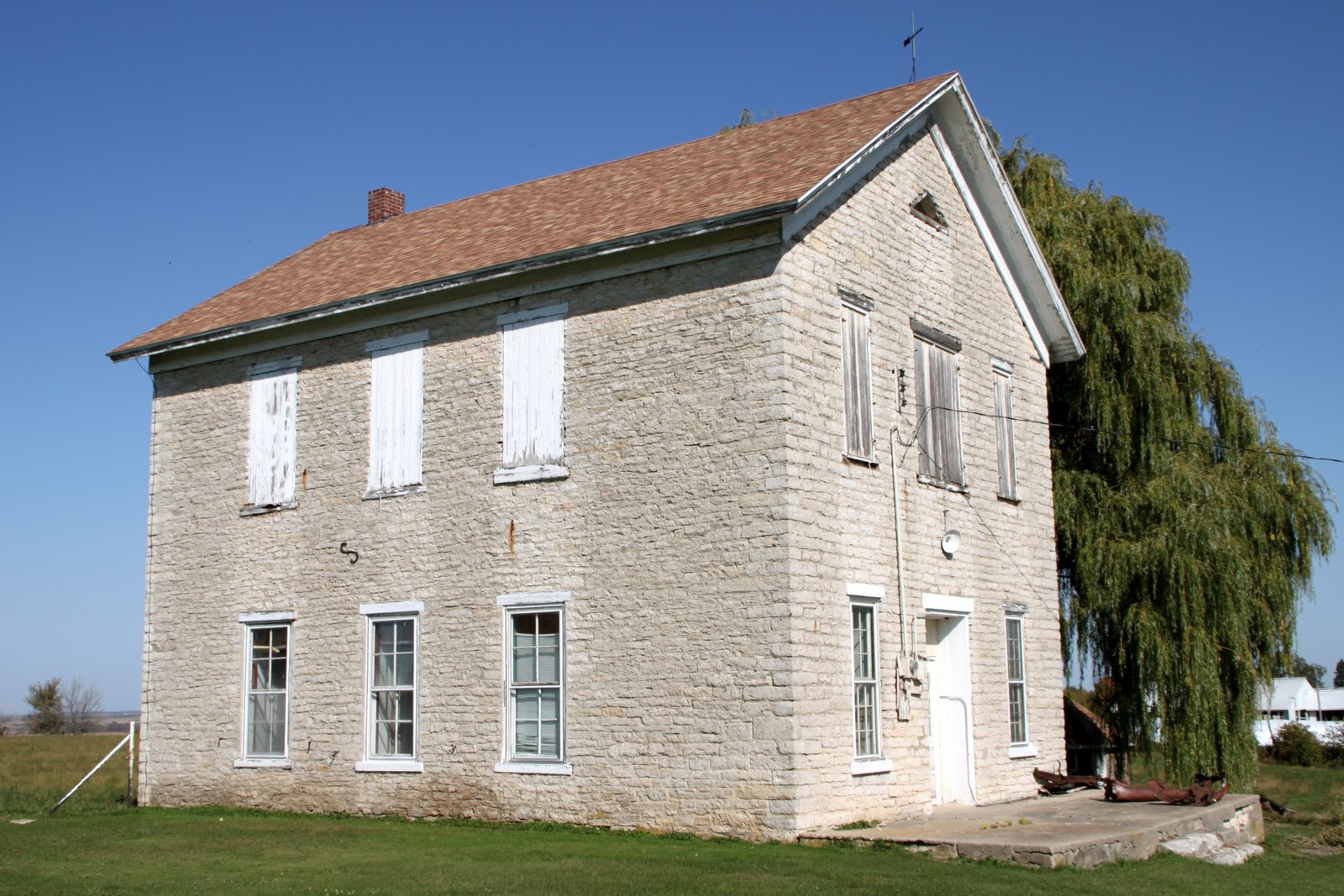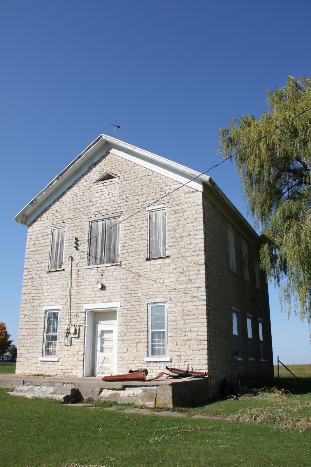 The little community of Lycurgus is about six miles northeast of Waukon on State Route 9. There is a Catholic Church on that corner of Lycurgus Rd. However, to find this school you need to drive about a mile to the next road, which is French Creek Rd. The school sits back just a bit from the northeast corner, with an electric power station in front of it. This huge stone structure has a second floor with another room. The school was built ca.1870. It was still in operation ca.1940 because I found information on the ‘net about someone attending there.