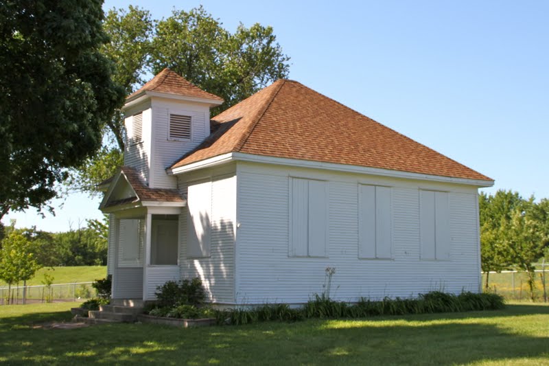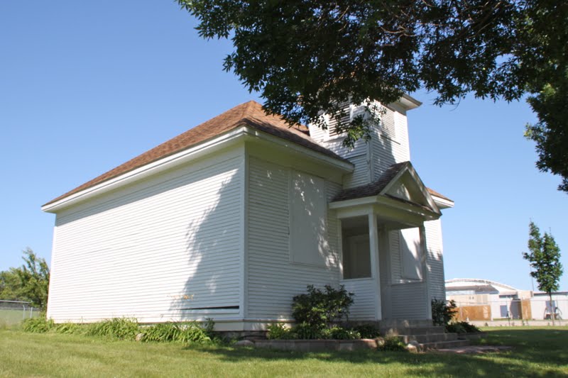 This school was moved to its present location from Bennington Township, northeast of Waterloo. It is currently located in Waterloo on the National Cattle Congress Fairgrounds on Ansborough Ave. It was used from 1914 until 1945. These photos were taken on 6/29/11