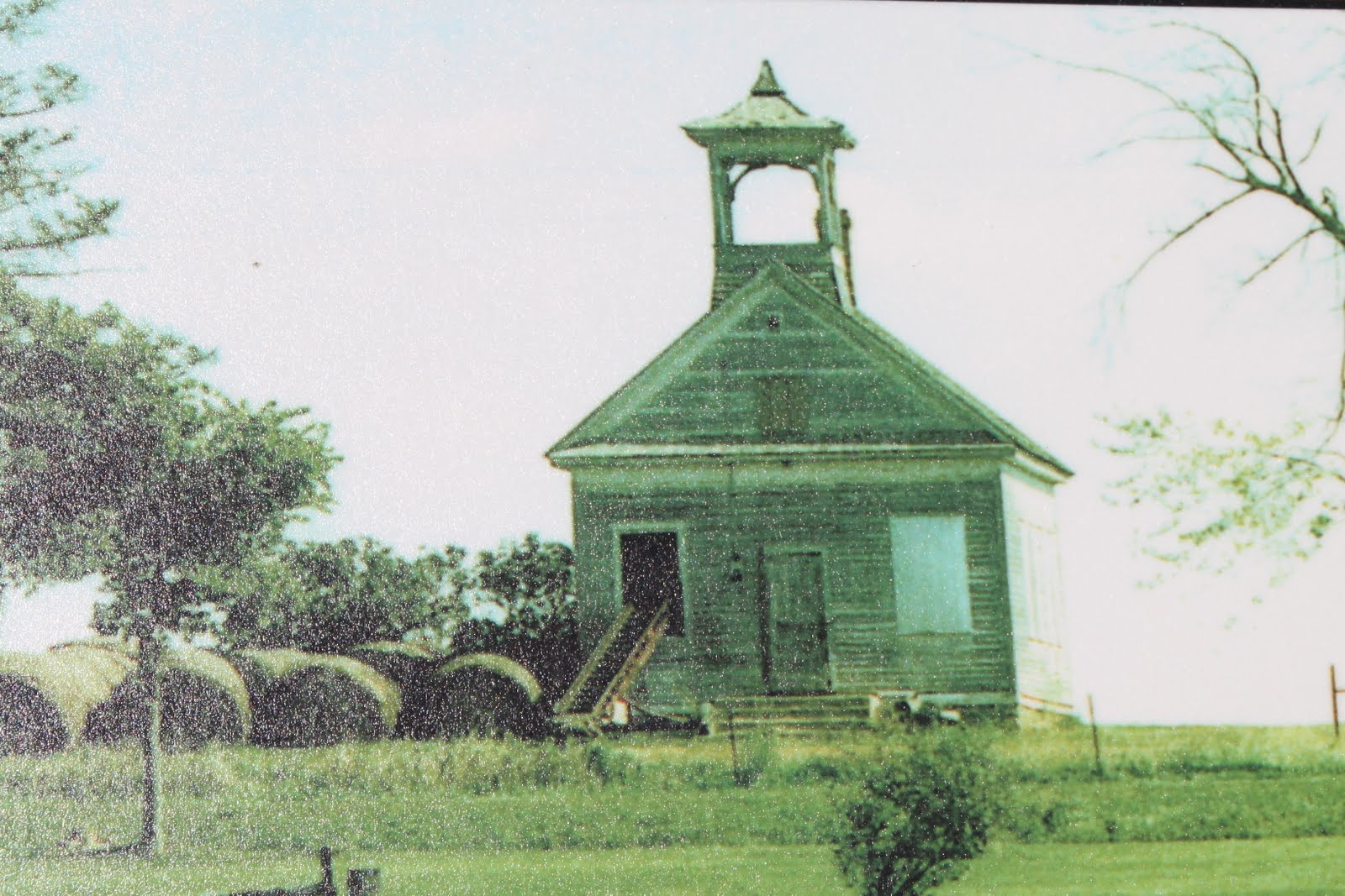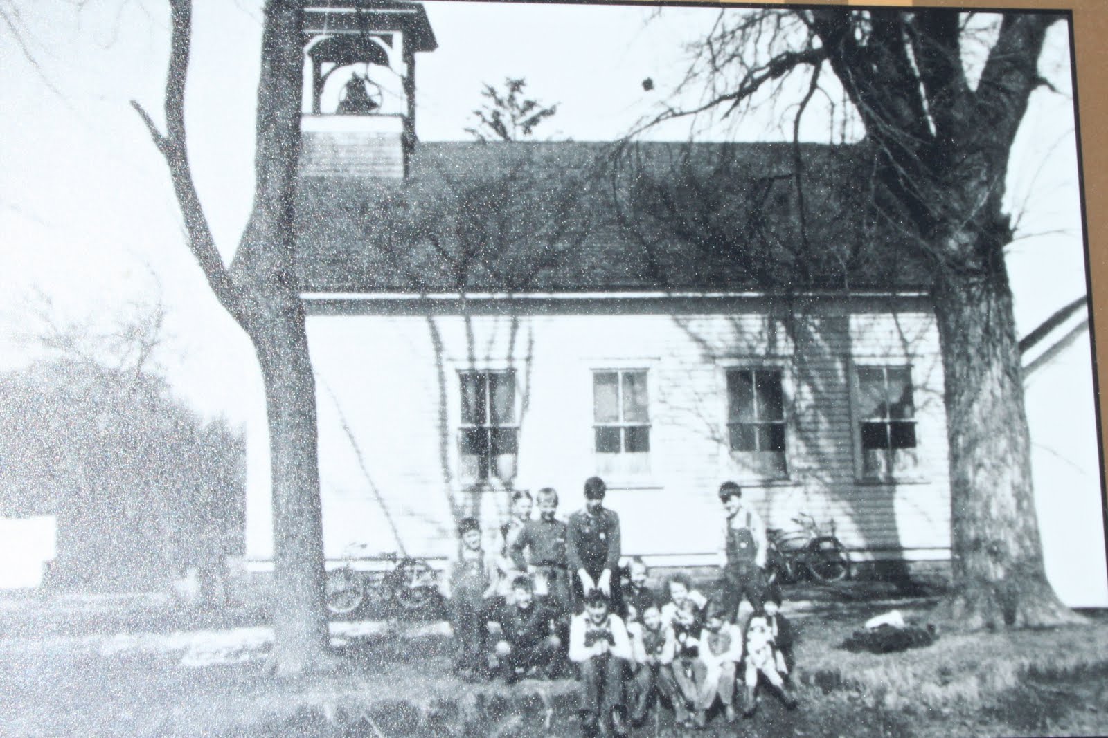Mr. Sage still had the school bell on his property, and brought it back several years ago when many volunteers decided to restore this school. This is a photo of the school during its active days: