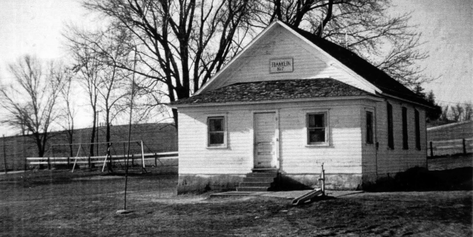 The first photograph is from Owen Jones' book, One-Room School Houses: Iowa County, Iowa 1844 - 1966. The school faces east, at the road.