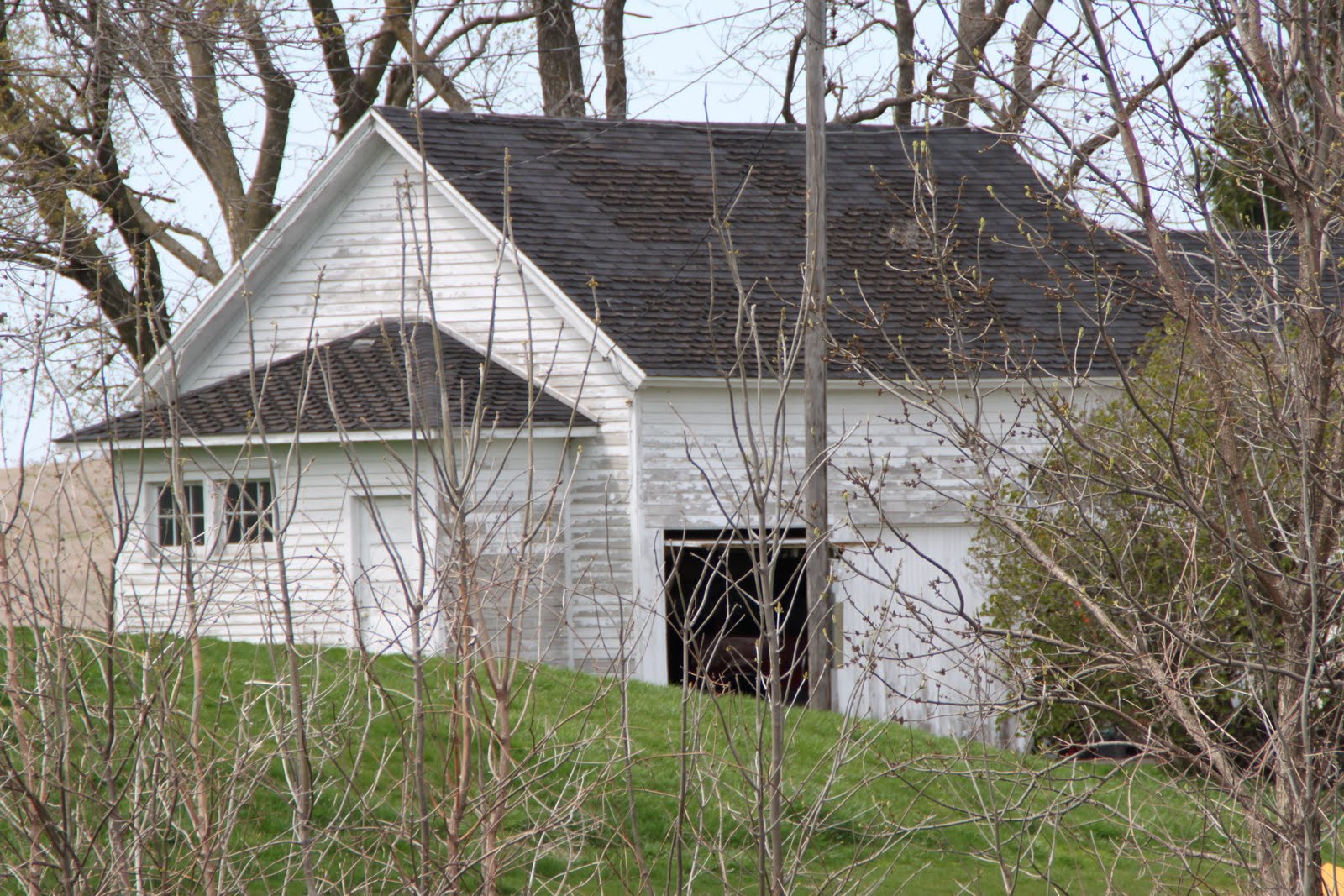 As you can see, this school is now used as a garage. The east side has doors cut into it, and there is an addition in the back, but on the west side you can readily see the old school structure.