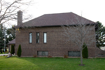 On the NW corner of X44 and County Road E17. This school has been completely bricked over in one of the more amazing remodeling jobs we’ve seen. Faces south.