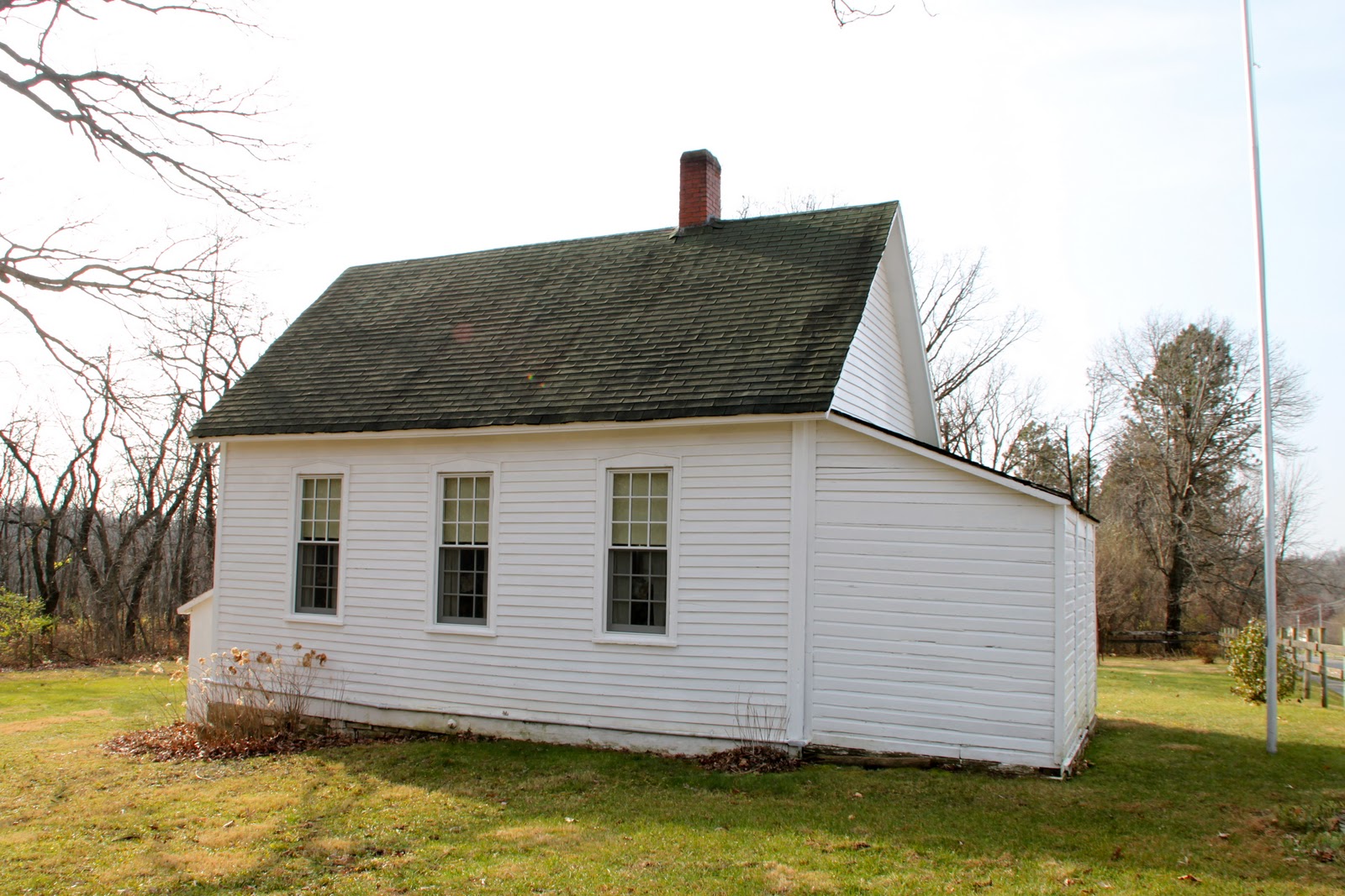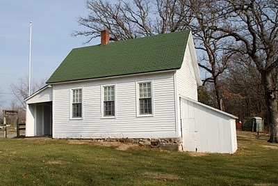 A rail fence in front of the school prevents a clean frontal shot. This is the south side of the school. The addition at the rear holds an oil tank. It may have possibly previously been for storing firewood.