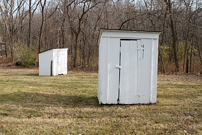 The original outhouses still stand behind the school, although they have caged them so you can only look inside.