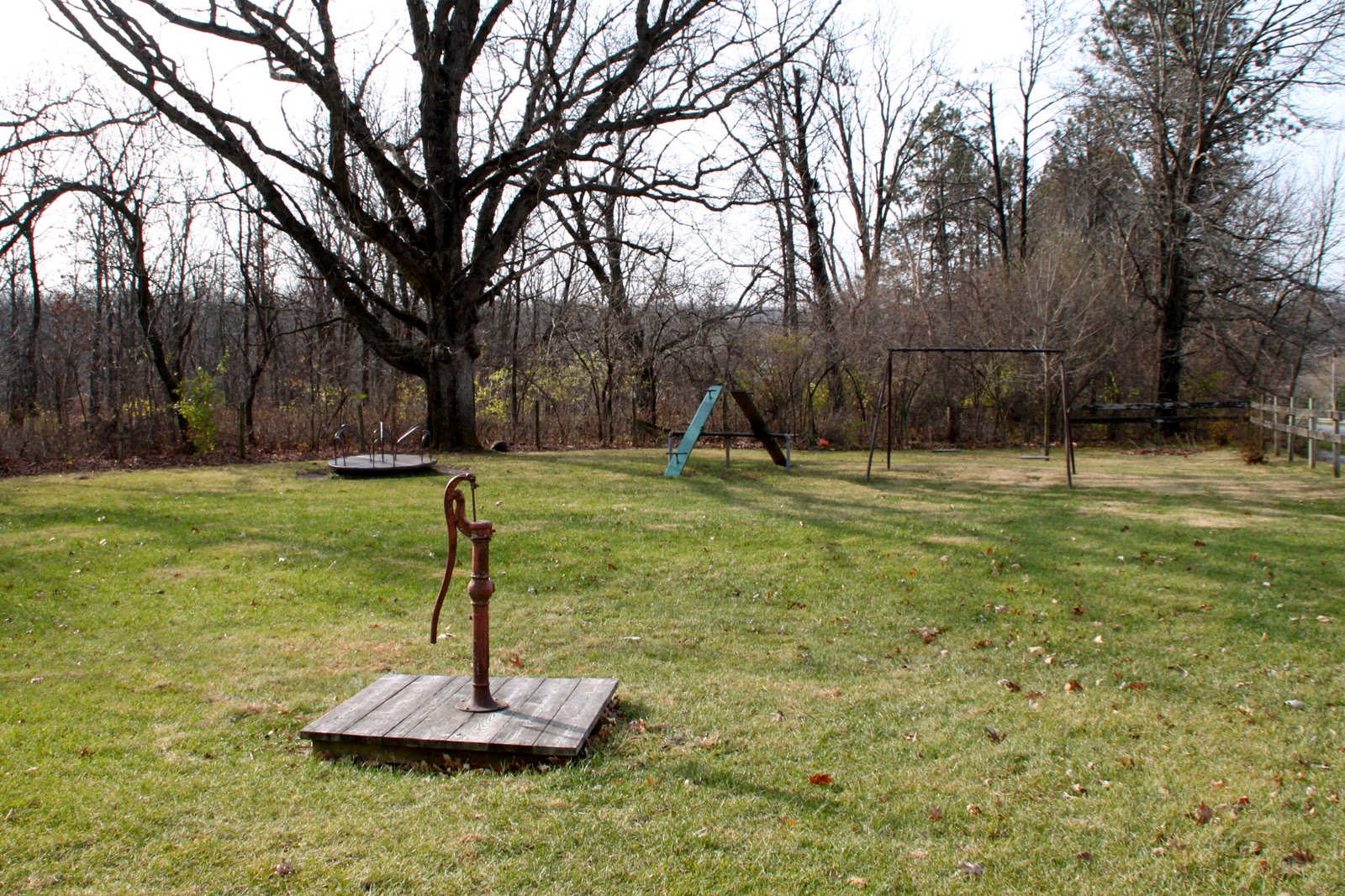 This next photo of the playground on the south side of the school shows a pump. I think this may have been moved here for display purposes, because in front of the school, next to the fence, is a square-shaped wooden cover over a hole which looks like a place for a well.