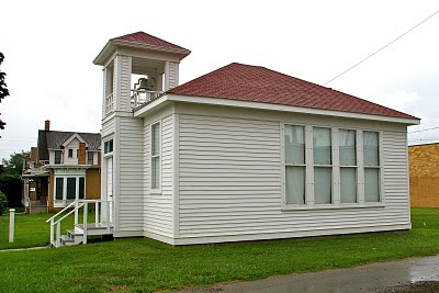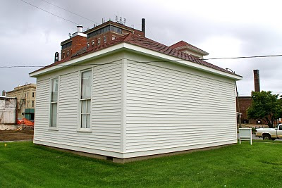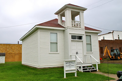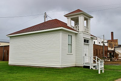 This school was moved to Marshalltown, IA, where we were passing through yesterday on our way to Boone. It is just north of Main Street on 2nd Avenue. As you can see, the one side has no windows, and that is the side the desks faced the blackboard.