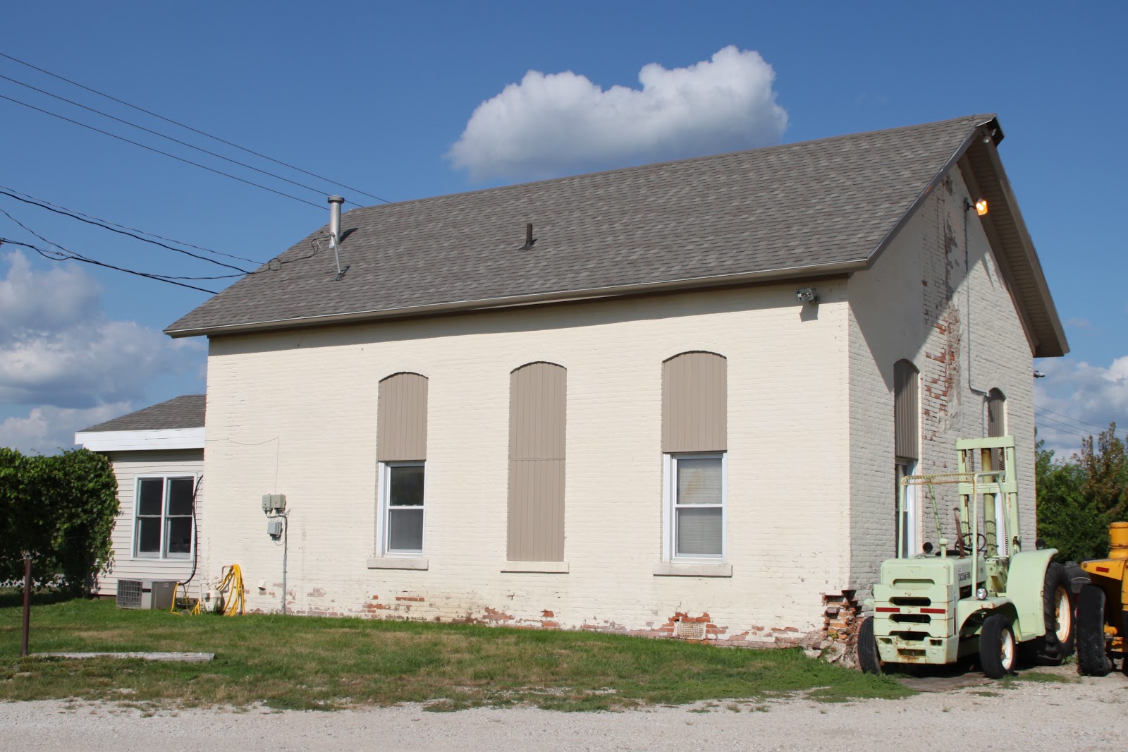 This brick school is located at 1220 NW 78th Ave. on the south side of Ankeny. The easiest way to locate it is to start at the intersection of Oralabor and Irvingdale Drive. Cross Oralabor southbound to the first left turn, which is 78th, and acts as a frontage road for Oralabor. The school will be about 100’ east of the intersection, on the south side. It is used as an office by Warren Transport.