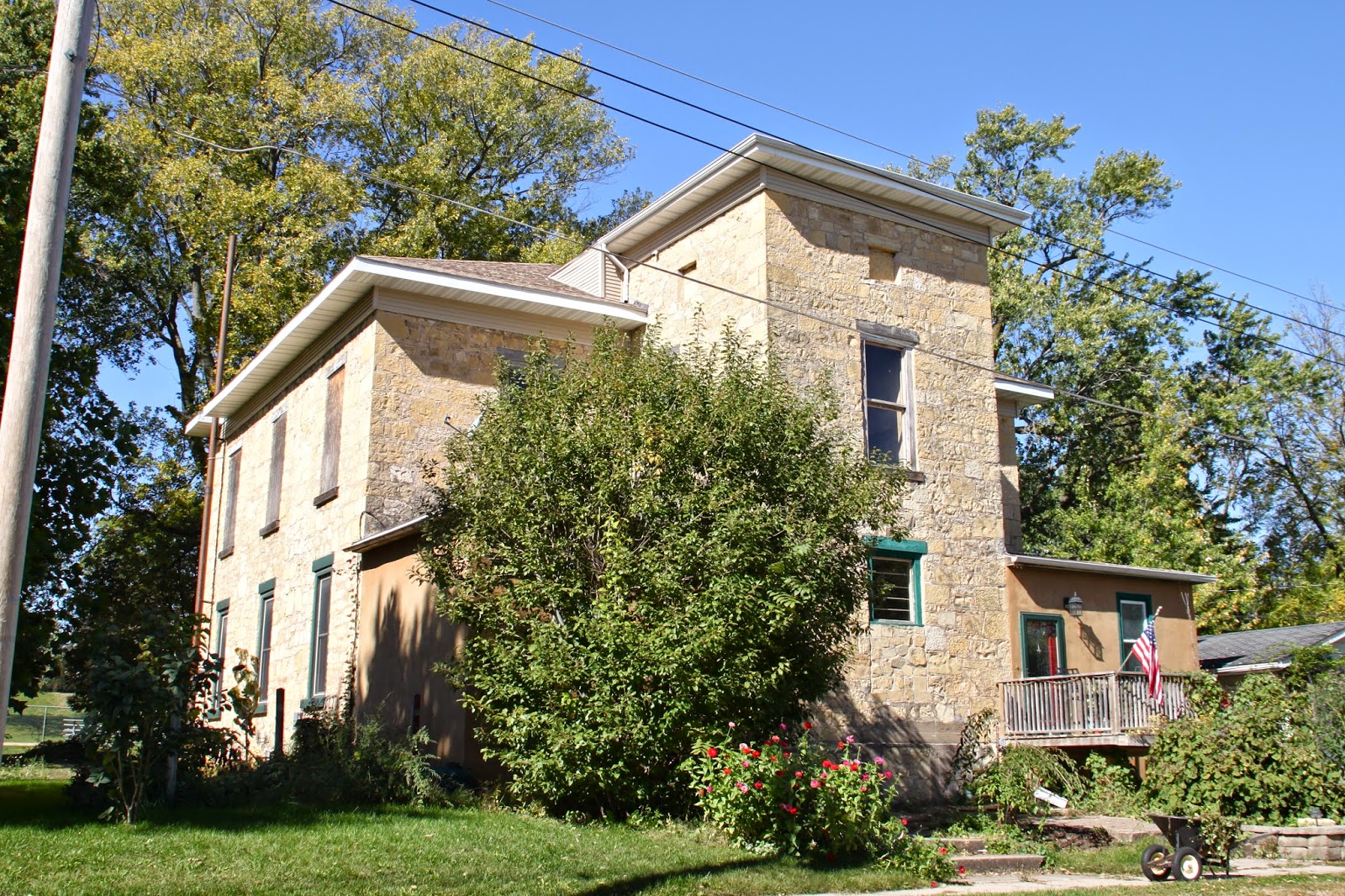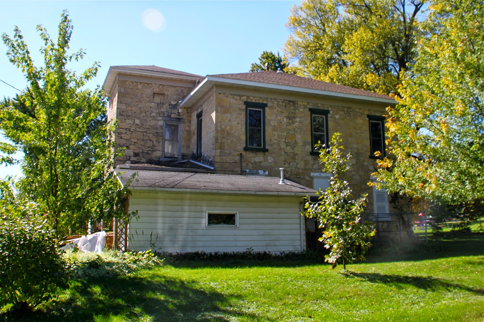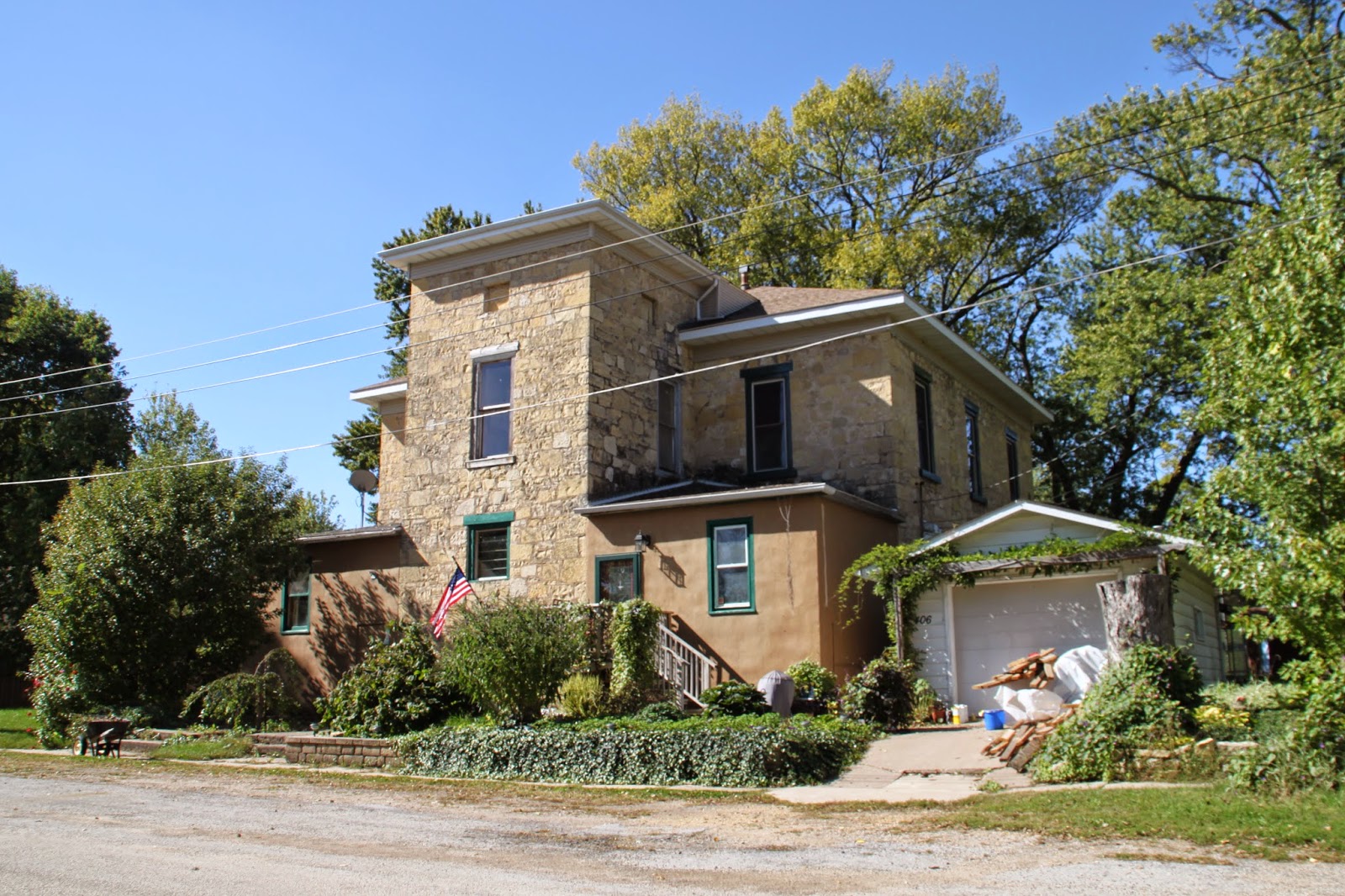 Built 1879. In Davenport at 5323 W Kimberly Rd (US6), SW corner of Kimberly Rd and Wisconsin Ave. Has an addition on the back that looks like a whole house.