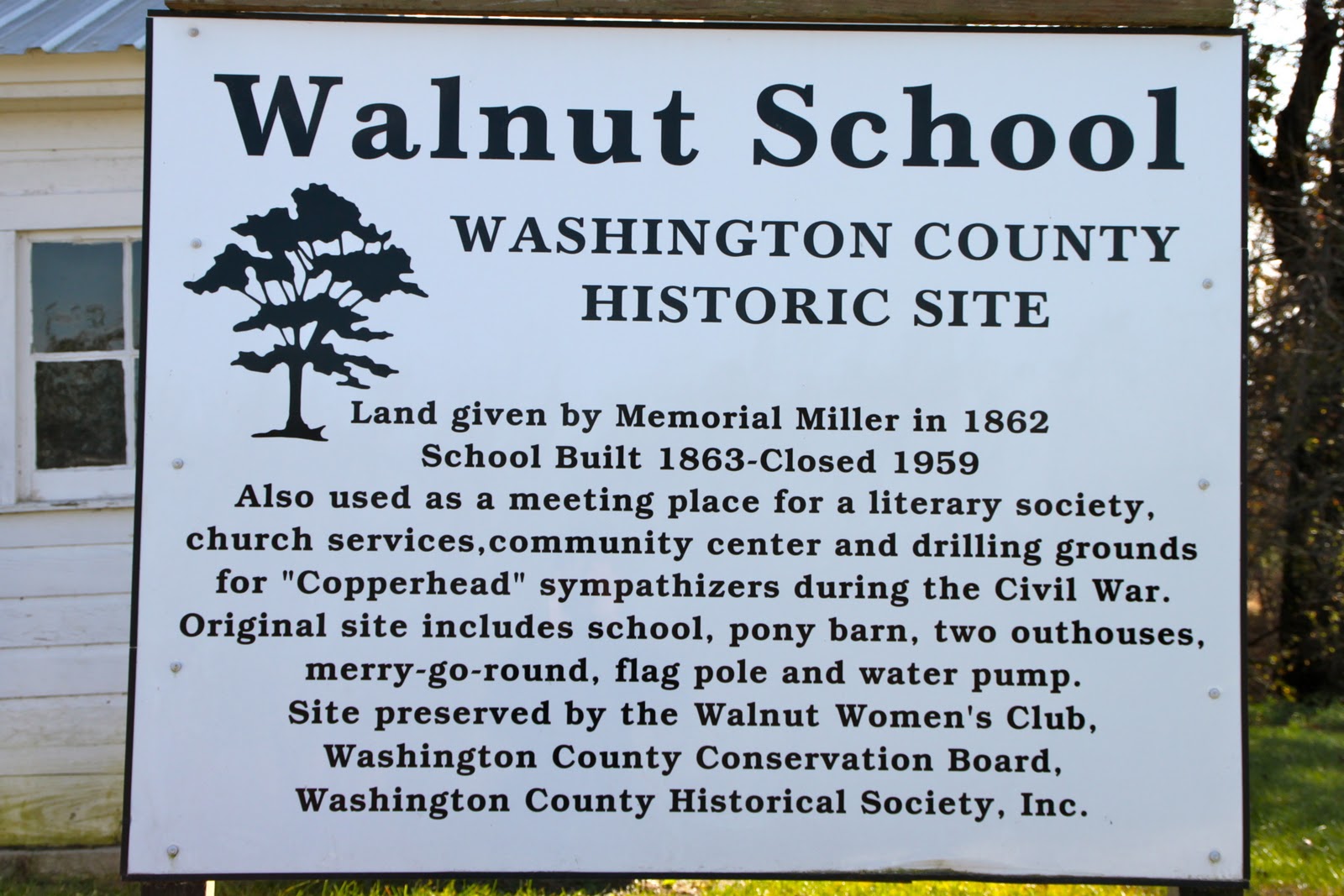 About 5 miles southwest of Washington, IA, on State Highway 1, turn east on 290th street and go about 200 feet and you will come across this old School. The sign tells everything about it. It was exciting because it was the first time we saw a pony barn! (Unfortunately, the windows had wire mesh over them so, although we could look inside at the desks, etc, we could not get the camera up against the window for photography.)