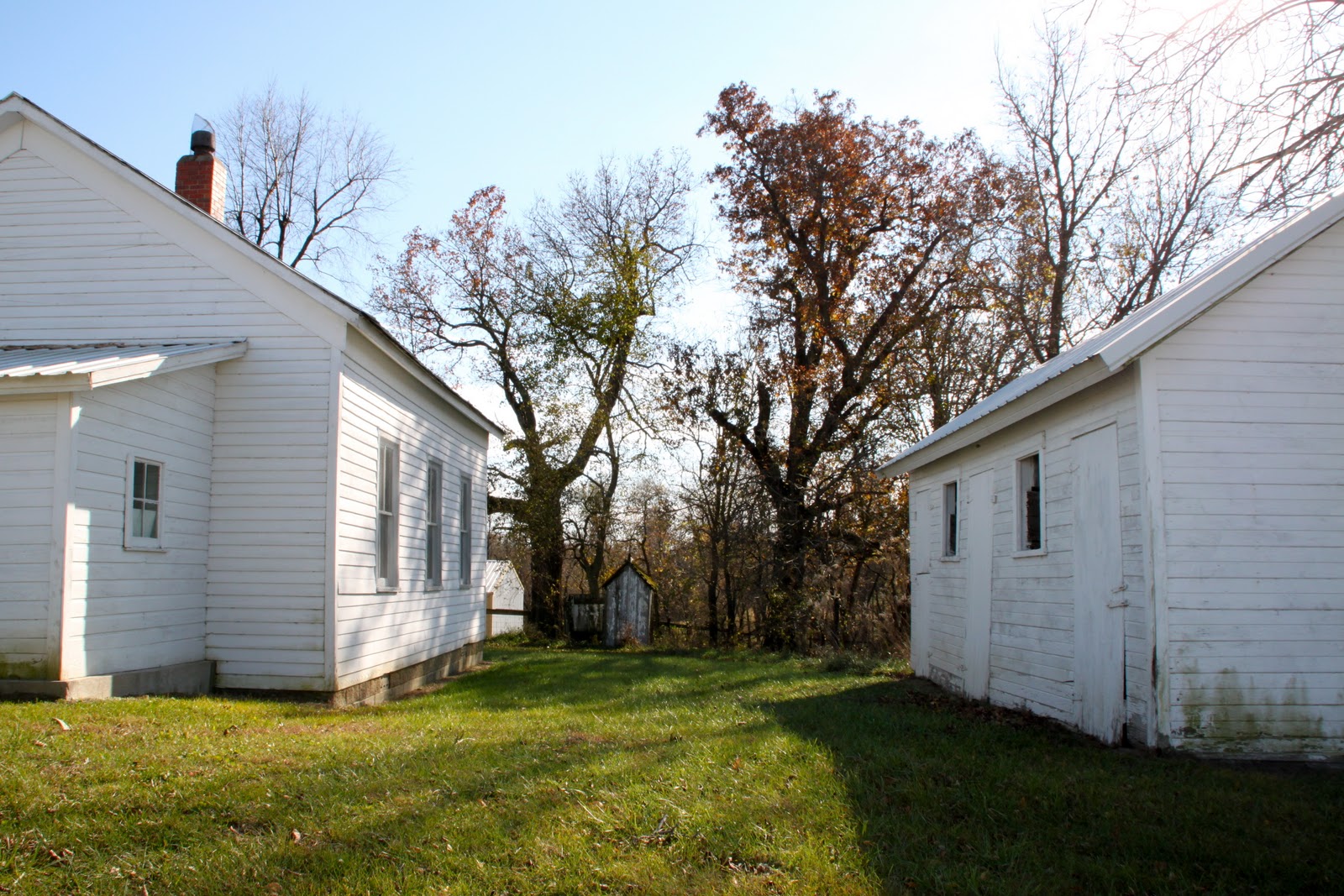 Looking along the west side of the school, you can see the pony barn and one old outhouse way back.